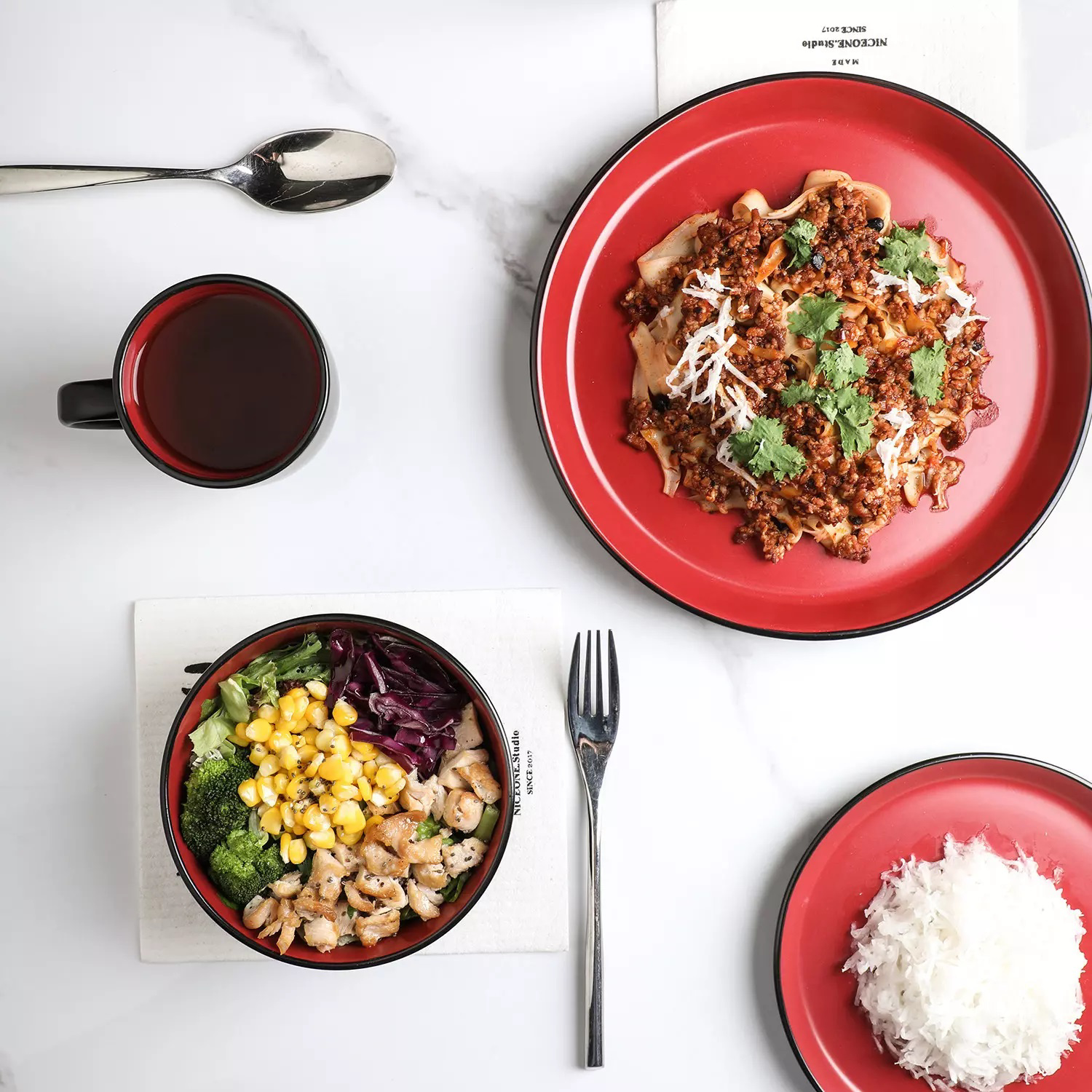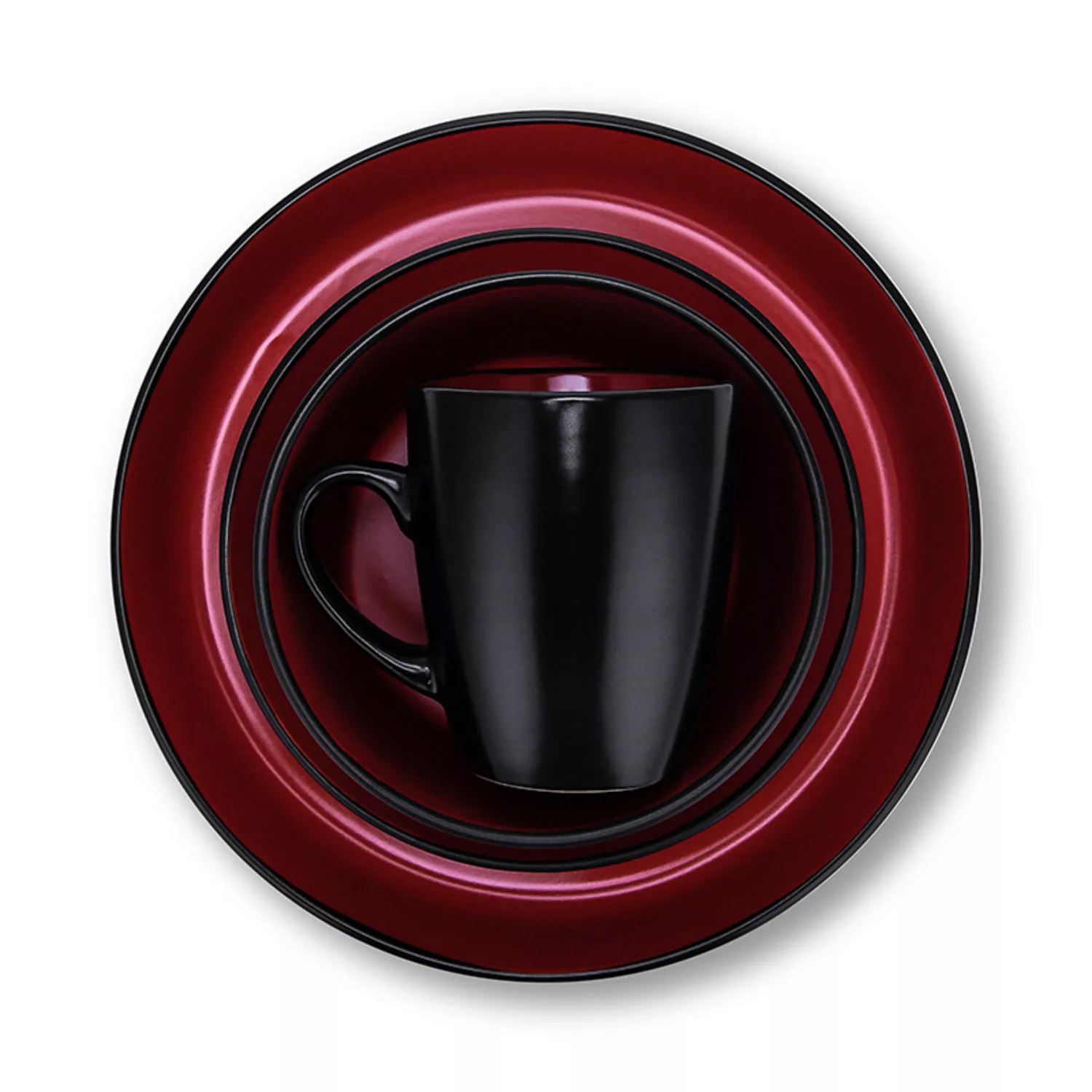 Make a statement at the dinner table with this set of beautiful speckled two-tone dishes. The Stone Lain 32-Piece Stoneware Round Dinnerware Set in Red and Black offers the perfect balance between trendy cool and modern classicism. These round plates, bowls, and cups turn every table into a hip party. The dinnerware set includes 8 large round 10" dinner plates, 8 round 7.5" salad plates with a unique lipped edge, 8 deep round 5.75" bowls, and 8 earthy 12-oz. cups with organic undertones.
