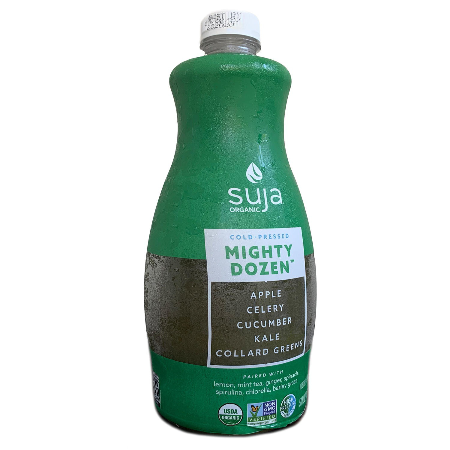Mighty Greens contains apple, celery, cucumber, kale, collard greens, lemon, peppermint tea, spearmint tea, spinach, ginger, spirulina, chlorella, barley grass and alfalfa grass. Basically all the goodness to keep your body fueled and going strong throughout the day.