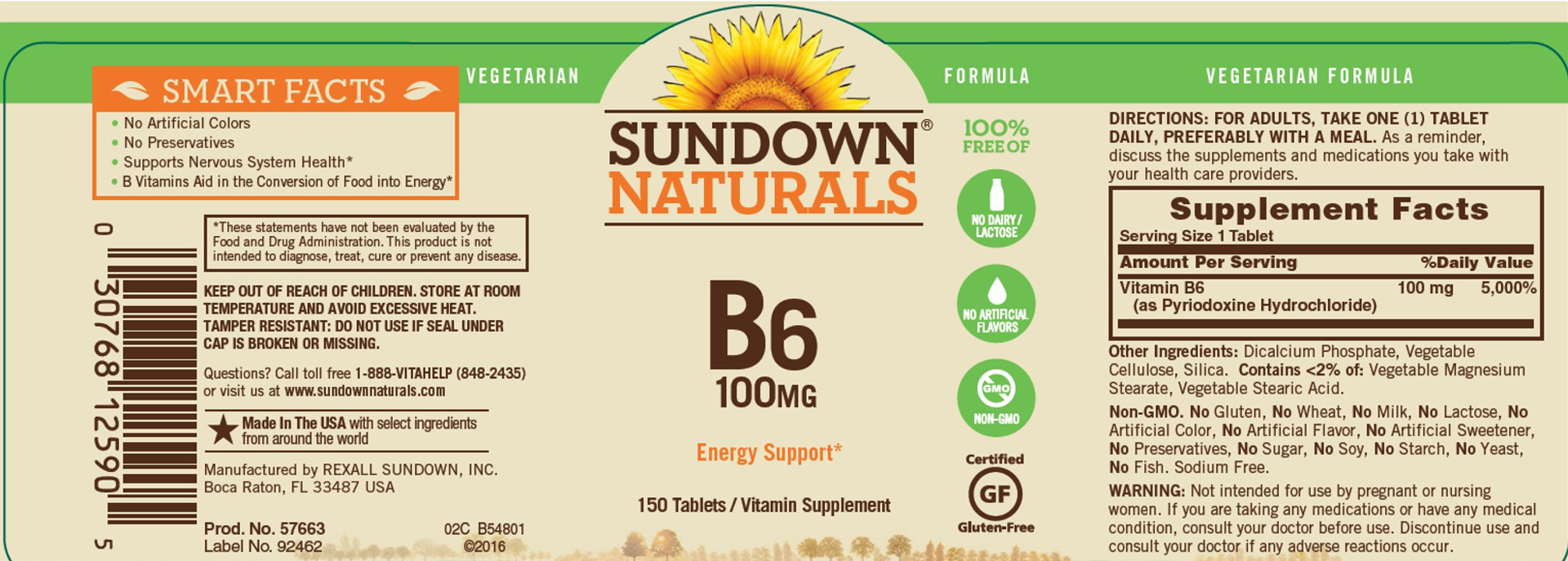 Sundown Naturals® Vitamin B-6 100 mg, 150 Tablets: