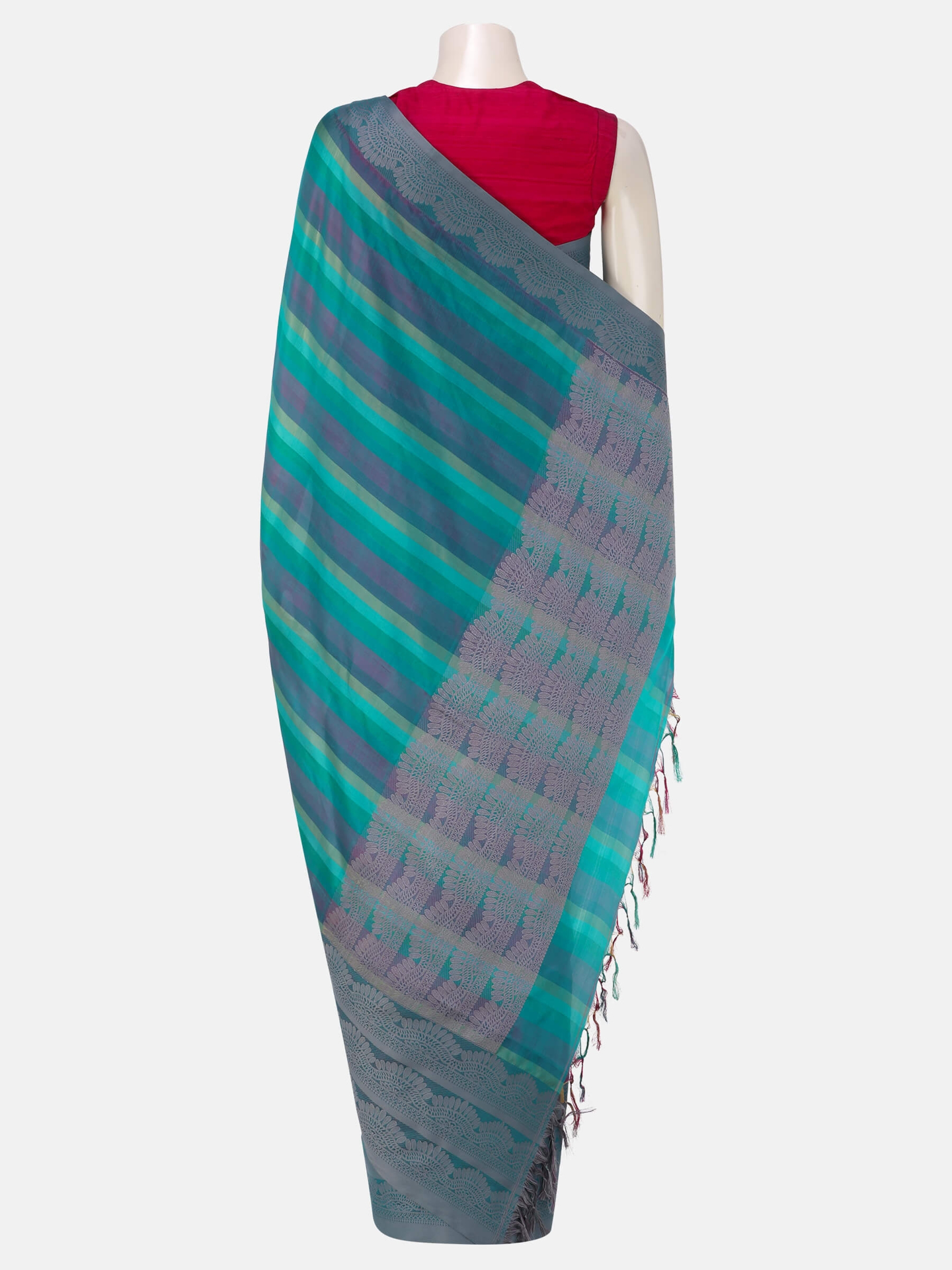 Teal Stripe Tangail Soft Silk Baluchari Saree