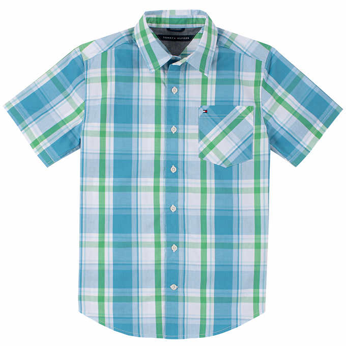 Colors: aqua, light blue, blue. Standard fit. Set includes 1 polo, 1 tee, 1 button up. A woven short-sleeve button-up with a front pocket. Polo has 3 button placket. Short-sleeve tee with logo graphic. Made in China.