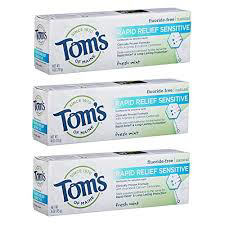 Get natural, fluoride-free tooth protection and whitening with Toms of Maine Natural toothpaste. Made without the harsh chemicals that can sometimes harm sensitive teeth, Tom's is an anti-plaque and cavity-fighting toothpaste that helps fight tartar without any artificial dyes or sweeteners. A mild, but effective formula with a fresh peppermint taste. Embrace the power of nature with these three 5.5 ounce tubes.Product Features: