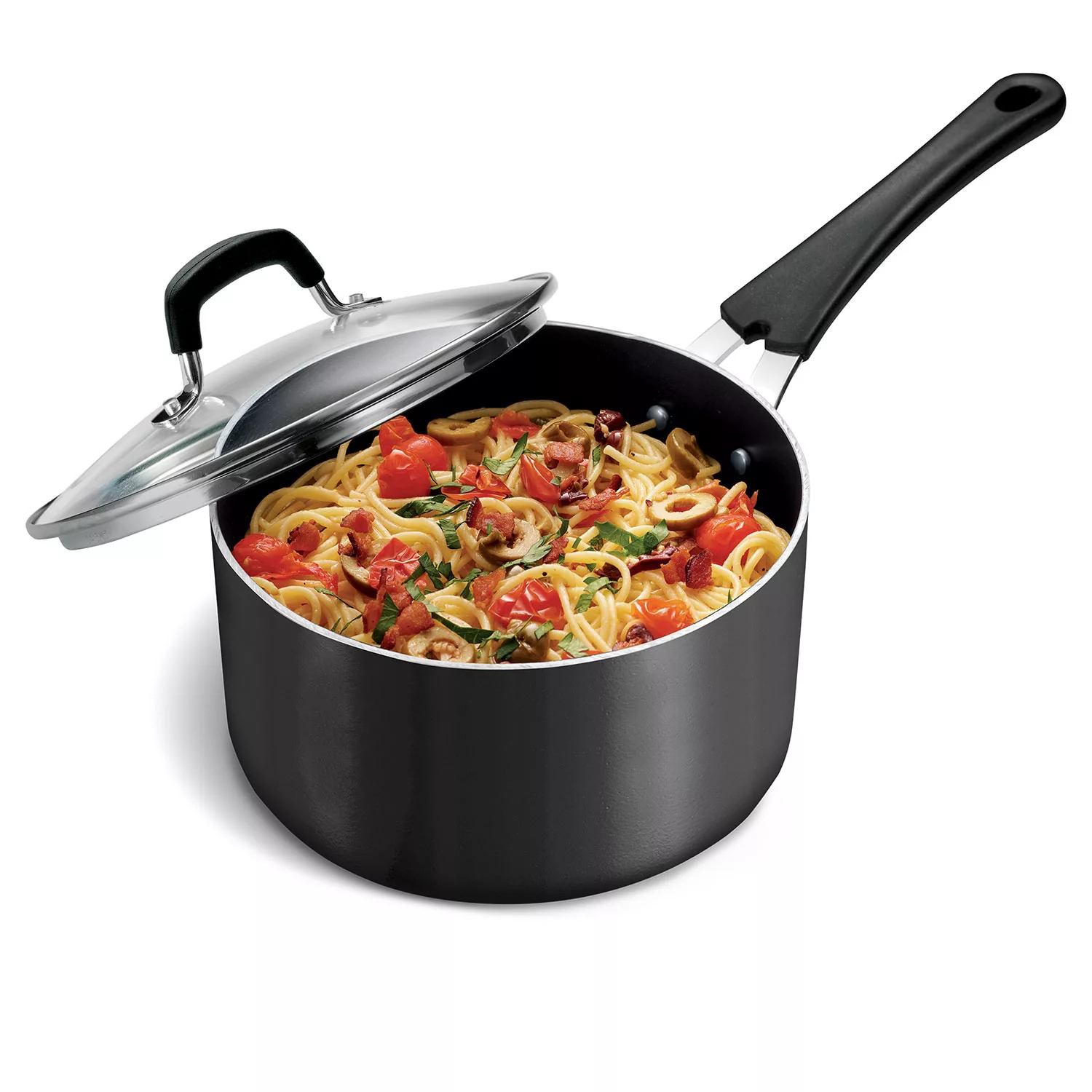ou’ll be impressed with the performance and features of Tramontina 6-Piece Stackable Nonstick Sauce Pan Set. This set offers outstanding quality and value with a convenient stackable design that helps keep your kitchen cabinets organized. The heavy-gauge aluminum construction of this set provides quick and even heat distribution, while the PFOA-free, reinforced nonstick cooking surfaces offer superior food release for effortless cooking and cleaning.