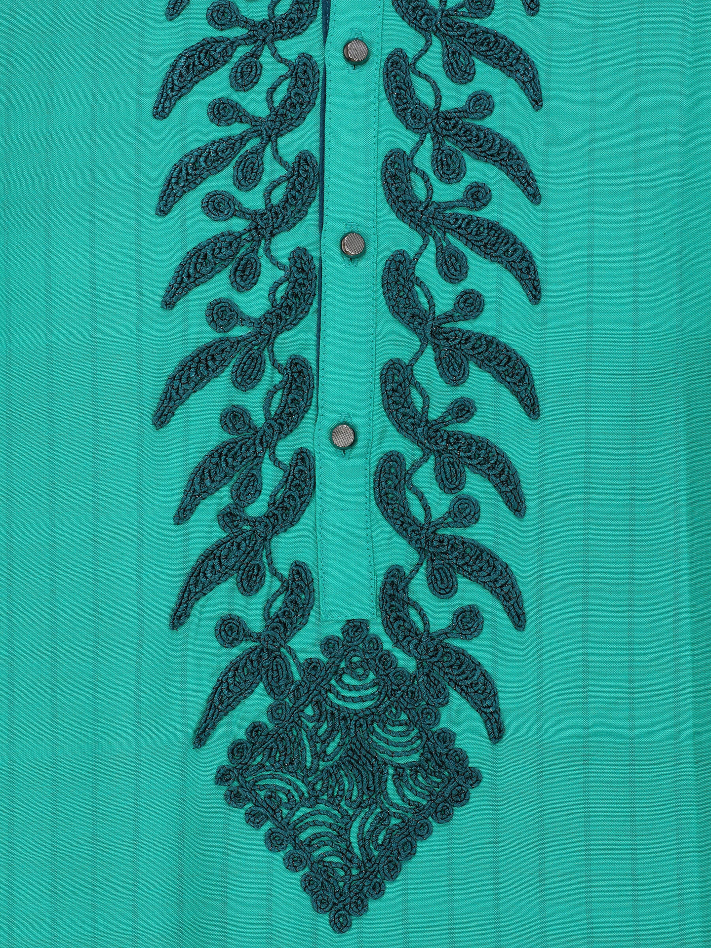 Turquoise joysree silk panjabi with teal embroidery. this panjabi useing very comfortable. made in bangladesh.