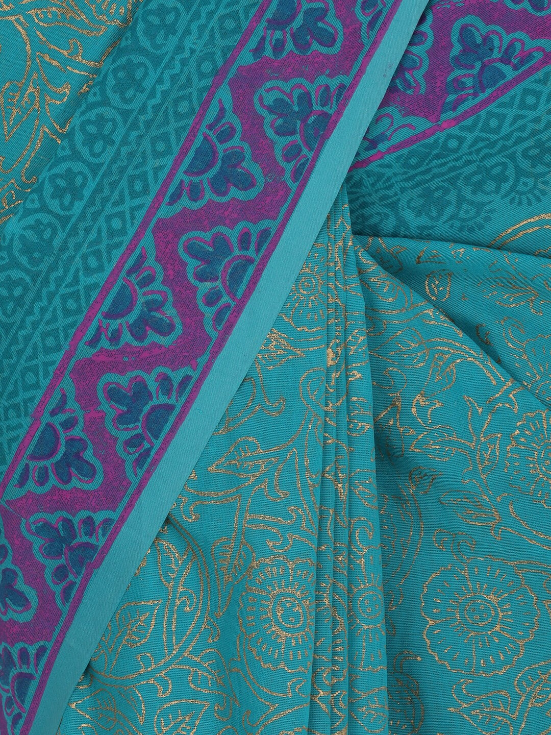Turquoise Printed Cotton Saree