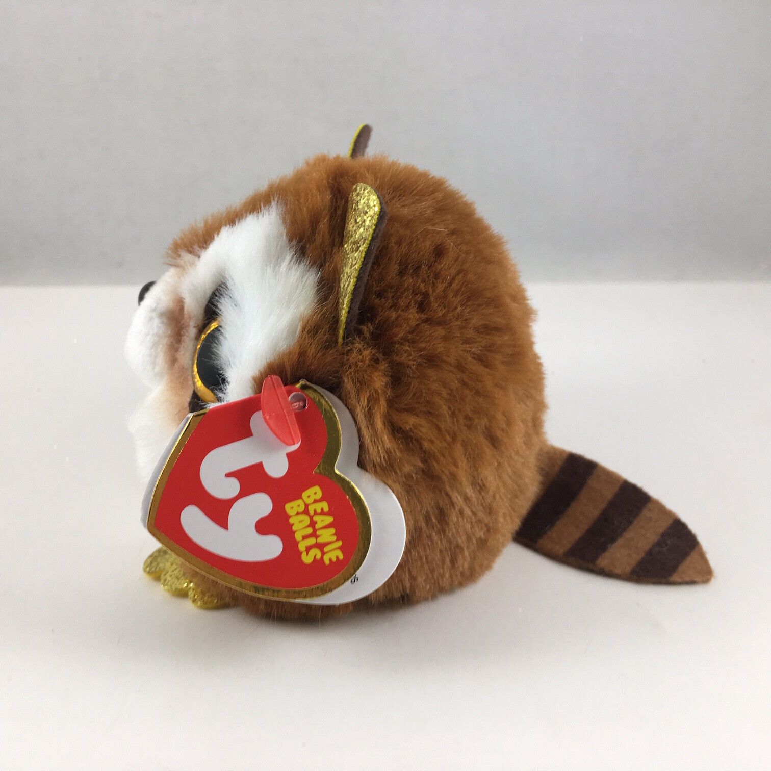 Unique weighted balls of Ty Puff Always land on their feet when tossed Sparkly glitter eyes Sparkle accented ears and paws Adorable raccoon with soft fur Fits in your hand Includes official Ty heart with birthday Surface clean only Size: 4 inches