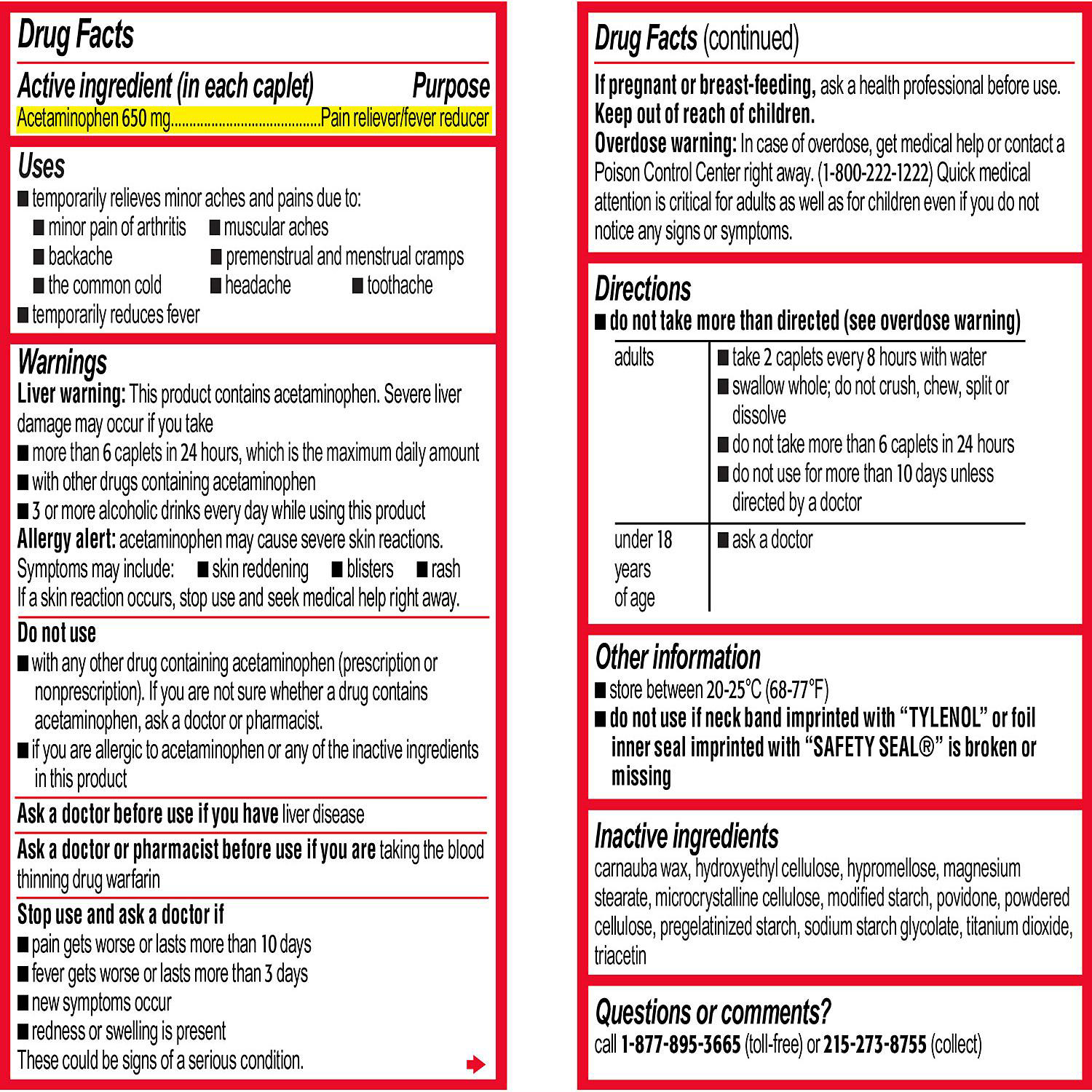 Follow the dosage instructions to make sure you're taking these TYLENOL 650 mg caplets properly.