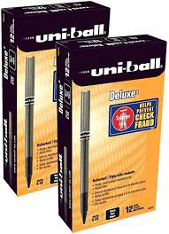 uni ball Deluxe Roller Ball Stick Waterproof Pen Black Ink Fine Dozen