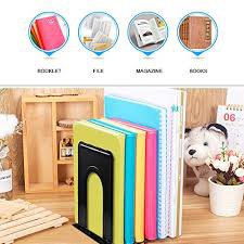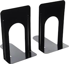 Reinforced bookends hold large and heavy books or files. Smooth edges with ribbing add stability and rigidity to hold almost anything upright. Hard enamel finish. Nonskid padded base. Material(s): Heavy gauge steel; Color(s): Black; Finish: Hard Enamel; Height: 5".