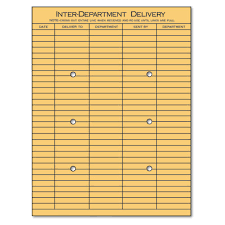 Durable Kraft stock is ideal for everyday interoffice use String and button closure can be used again and again. The pre-printed routing table features 31 rows. Envelope/Mailer Type: Interoffice; Envelope Size: 10 x 13; Closure: String & Button; Trade Size: #97.