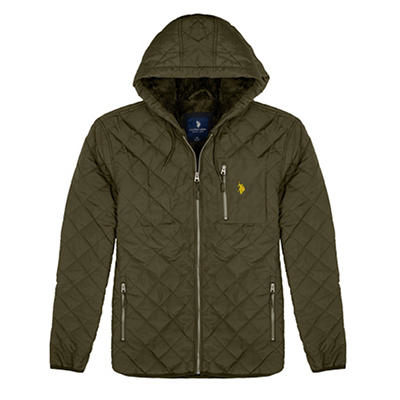 Product Features: Dimond quilting with hood Front zip closure Sherpa lining