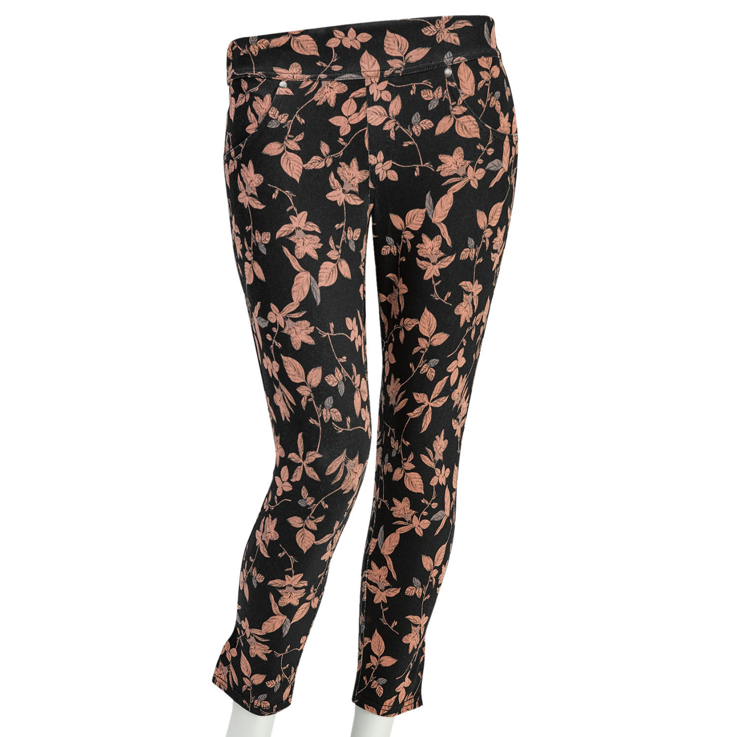The Utopia Ultra Soft High Waist Denim Capri is styled like jeans with real back pockets. Made with new ultra soft fabric, these capris offer the benefit of great stretch that you can wear comfortably all day. They are available in Misty Rose and two new patterned styles, Coral Floral in Black, and Tropical Floral in Ivory, all in sizes SM - XL. Machine wash cold, separately. Only non-chlorine bleach when needed. Tumble dry low. Cool iron if needed. Fiber Content, 56% cotton, 38% polyester, 6% spandex
