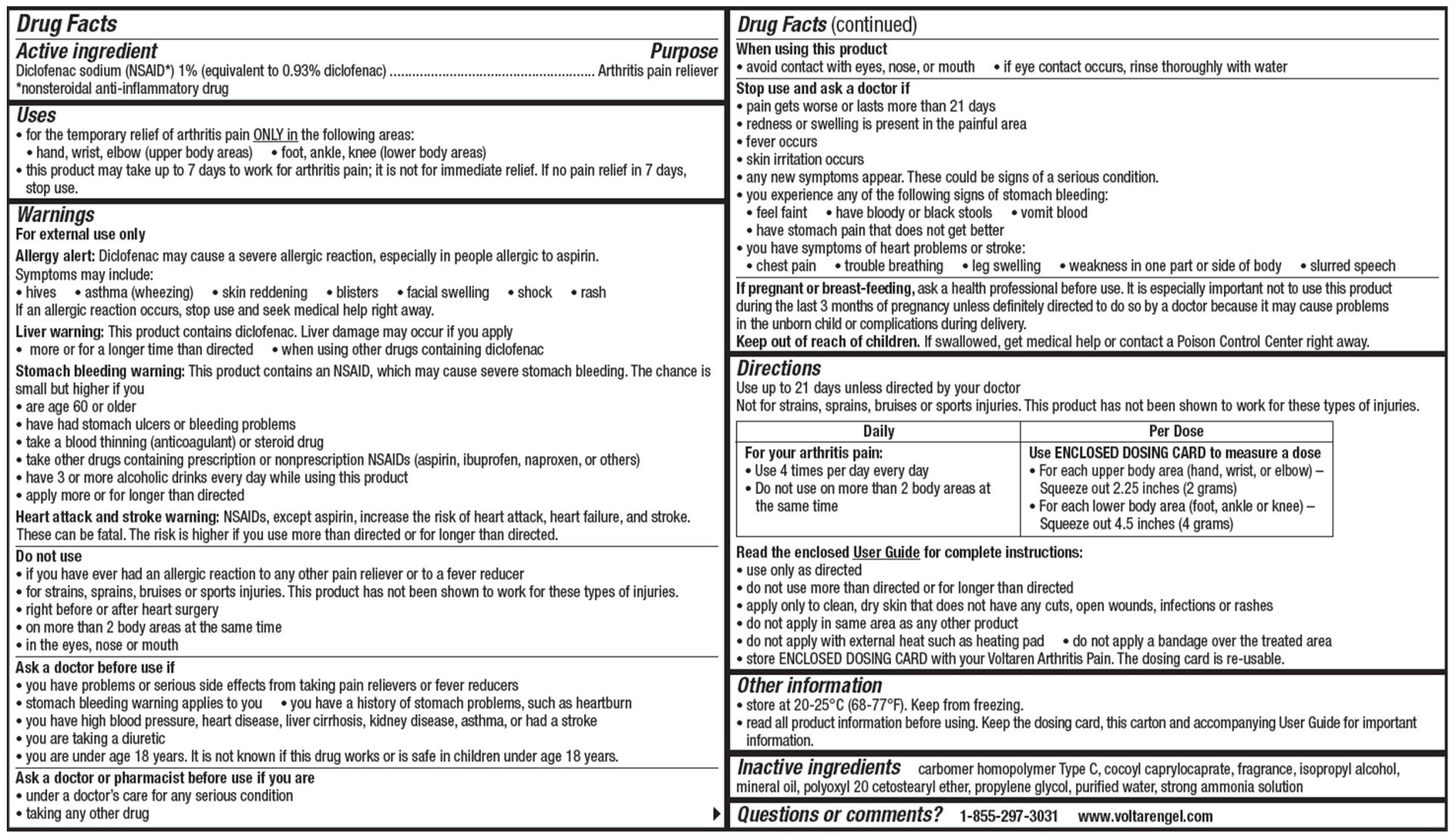 Voltaren Arthritis Pain Gel is a full prescription strength OTC topical NSAID gel for arthritis pain relief. While most topical pain relief products heat or cool the surface of the skin, Voltaren Arthritis Pain Gel treats the pain. This Voltaren Emulgel formula, which combines cream and a gel, penetrates deep through your skin to provide relief at the site of pain. That’s the Voltaren Difference.