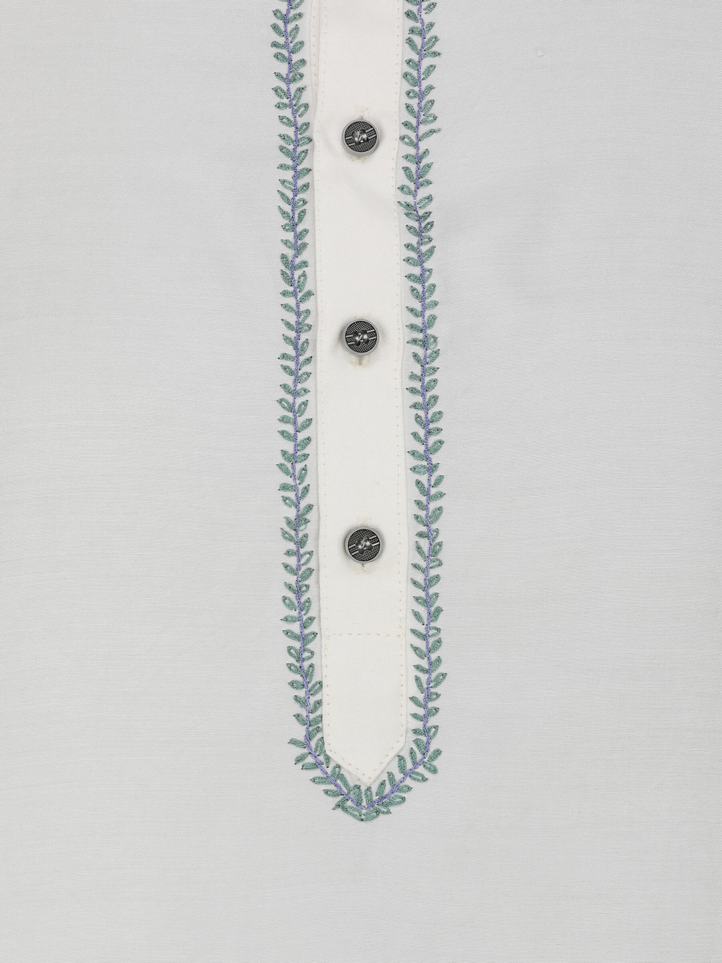 Ivory viscose panjabi with white embroidery on front and back. this panjabi useing very comfortable. made in bangladesh