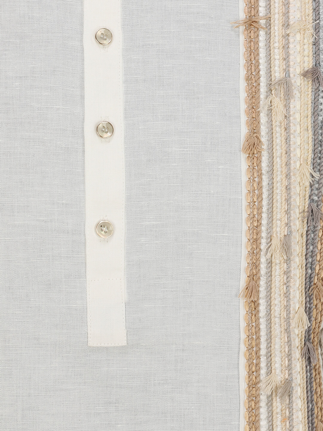 White slim fit mixed cotton panjabi with multicolour embroidery.
