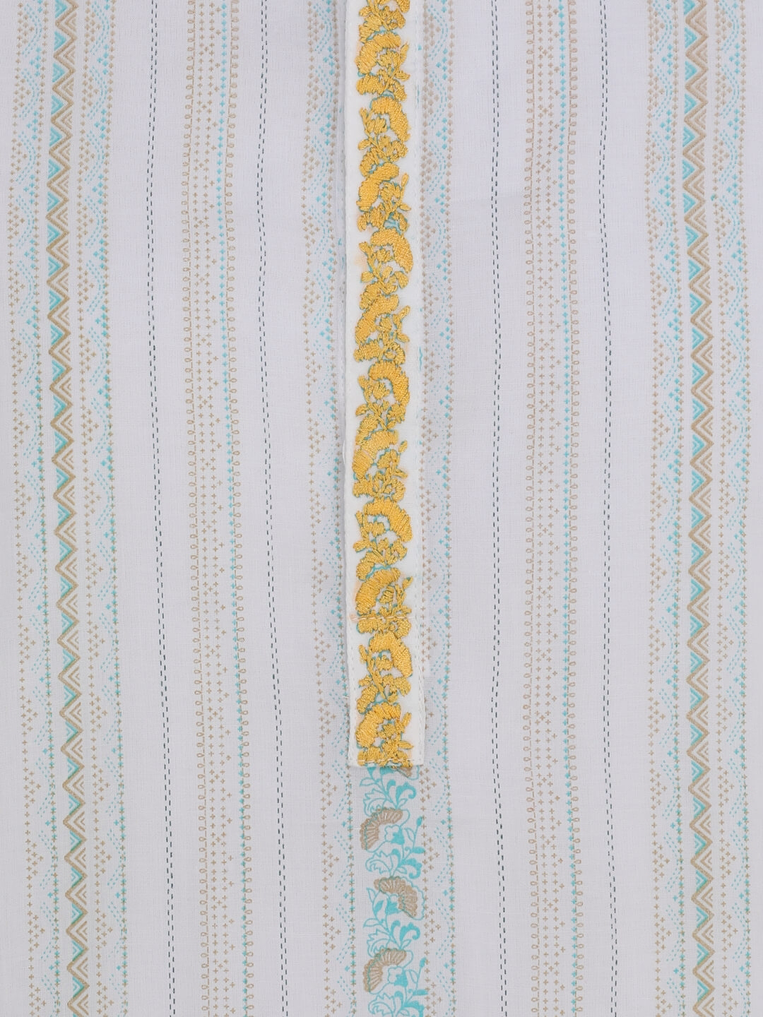White printed addi cotton panjabi with yellow embroidery.