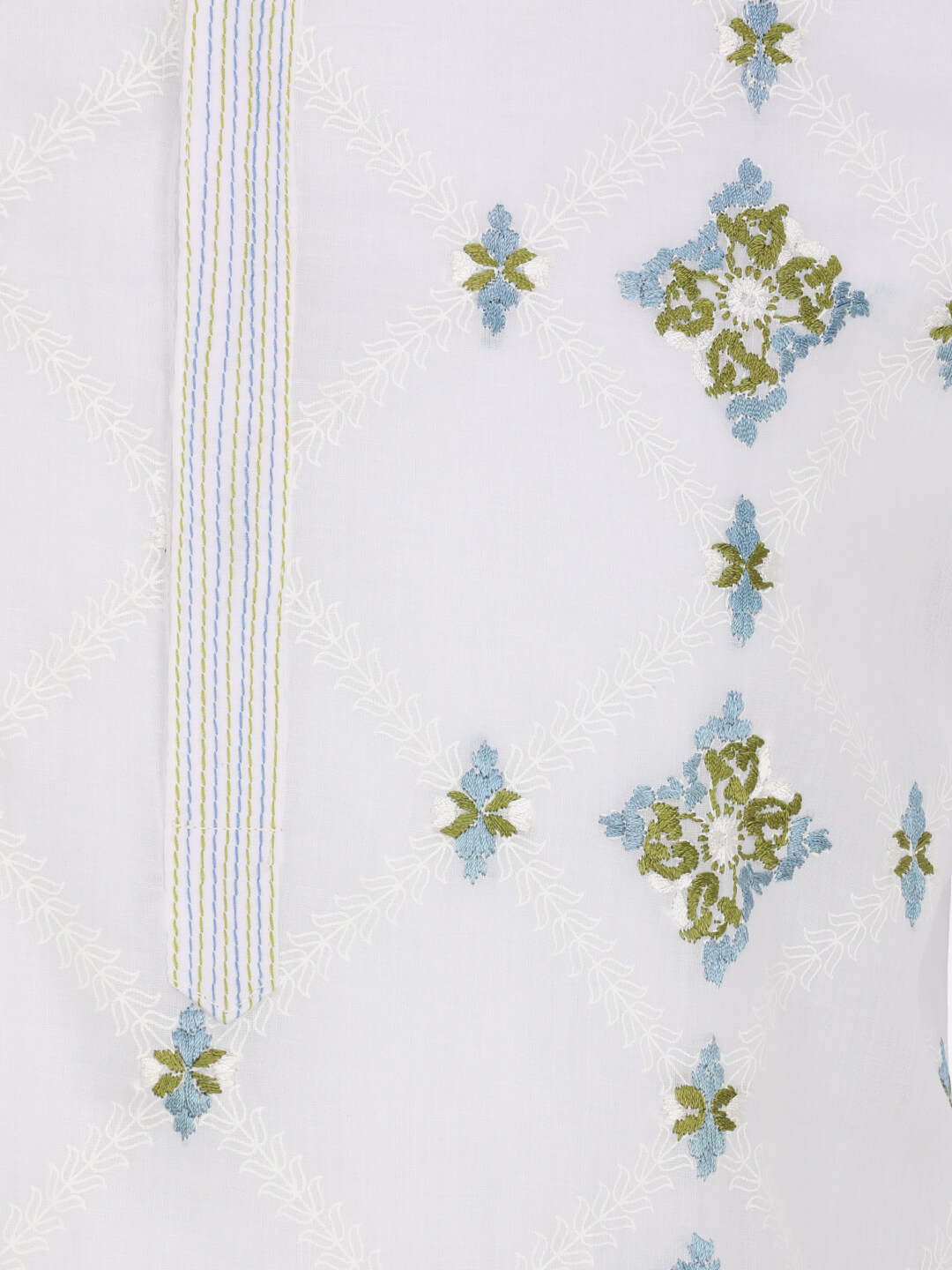 White printed addi cotton panjabi with multicolour embroidered. this Panjabi using comfortable. made in bangladesh. there are very comfortable to wear.