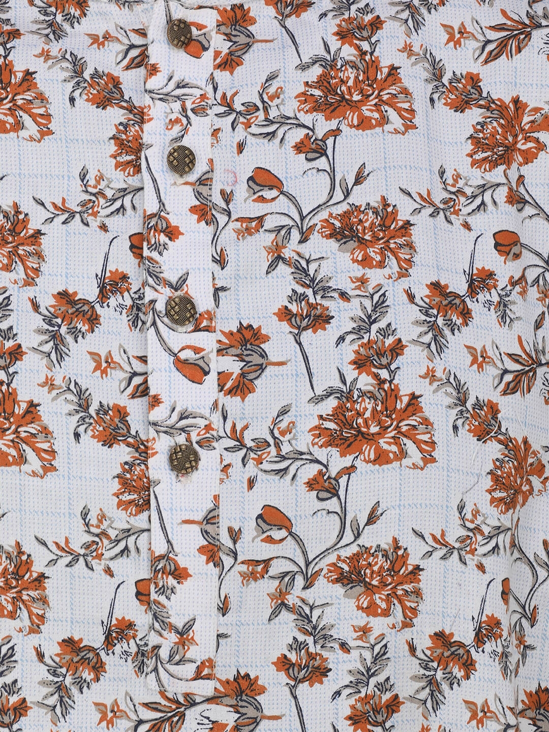 White printed slim fit cotton short kurta. this kurta useing very comfortable. made in bangladesh.