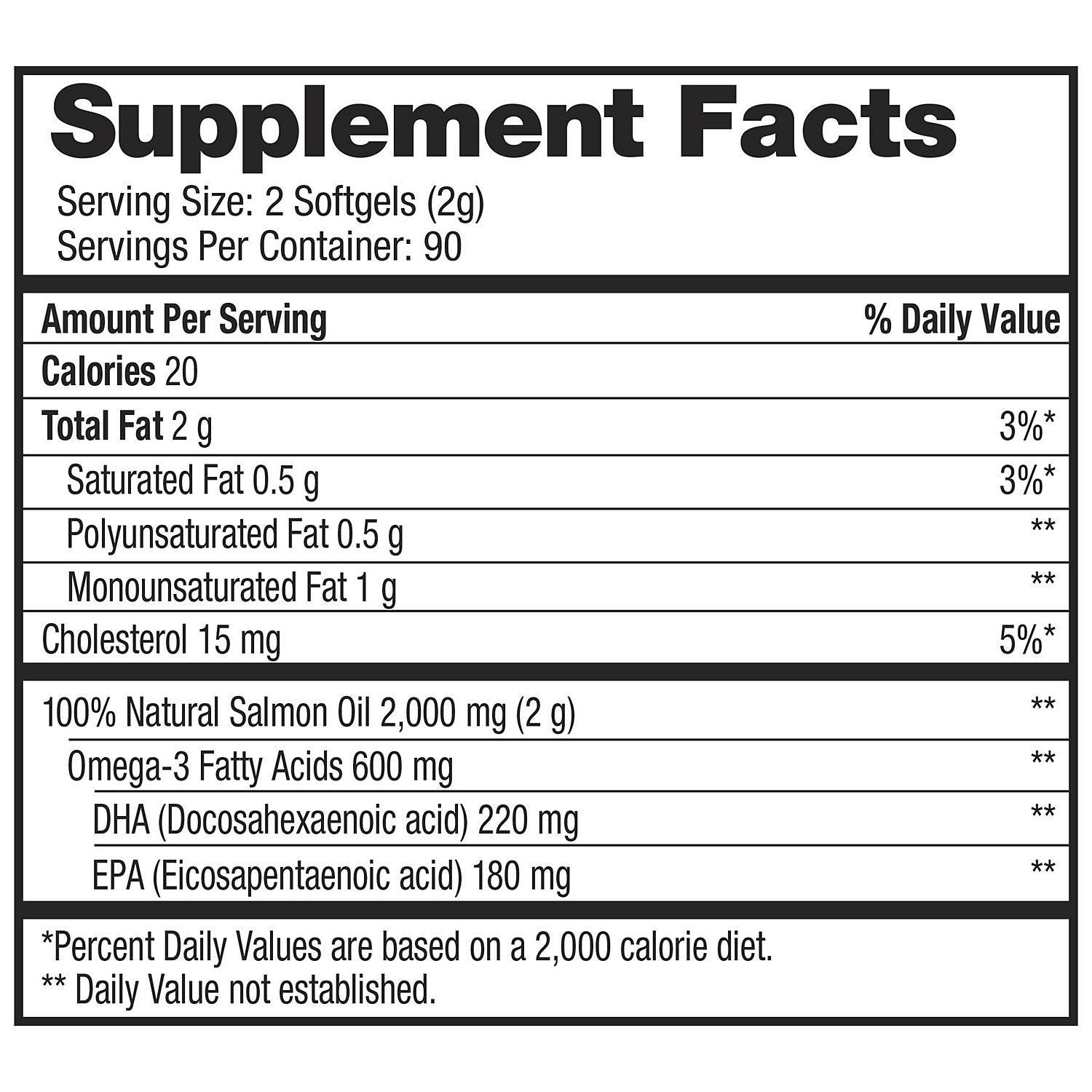 Supplement your daily diet with Wild Alaskan Salmon Oil Softgels (180-count). Naturally high in Omega-3 fatty acids, it's designed to be taken twice daily.