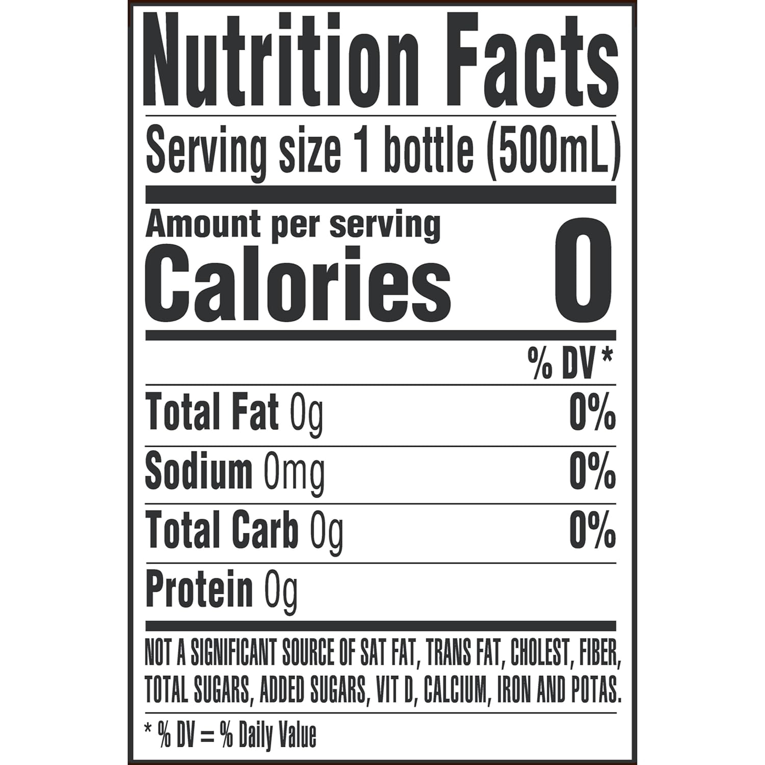 Caffeine-free, full of 100% natural flavors. 16.9 fl oz bottle 6 pack to help you cut through the noise CARBONATED WATER, HIGH FRUCTOSE CORN SYRUP, CITRIC ACID, NATURAL FLAVORS, SODIUM CITRATE, SODIUM BENZOATE (TO PROTECT TASTE).