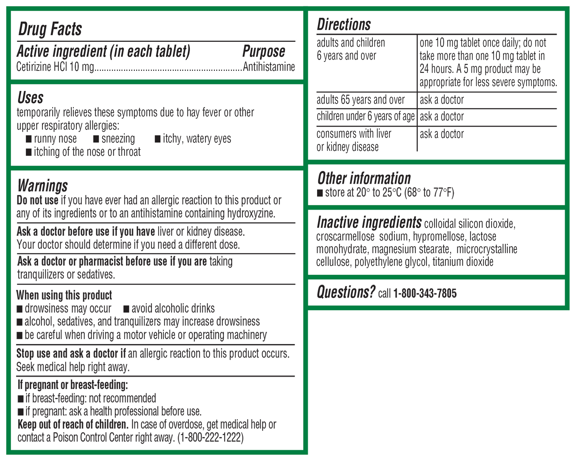 Zyrtec Tablets relieve your worst allergy symptoms, indoor and out. With 10 milligrams of cetirizine hydrochloride per tablet, this prescription-strength allergy medicine provides 24 hours of relief from common symptoms of hay fever and other upper respiratory allergies: runny nose, sneezing, itchy, watery eyes, and itching of the nose or throat.
